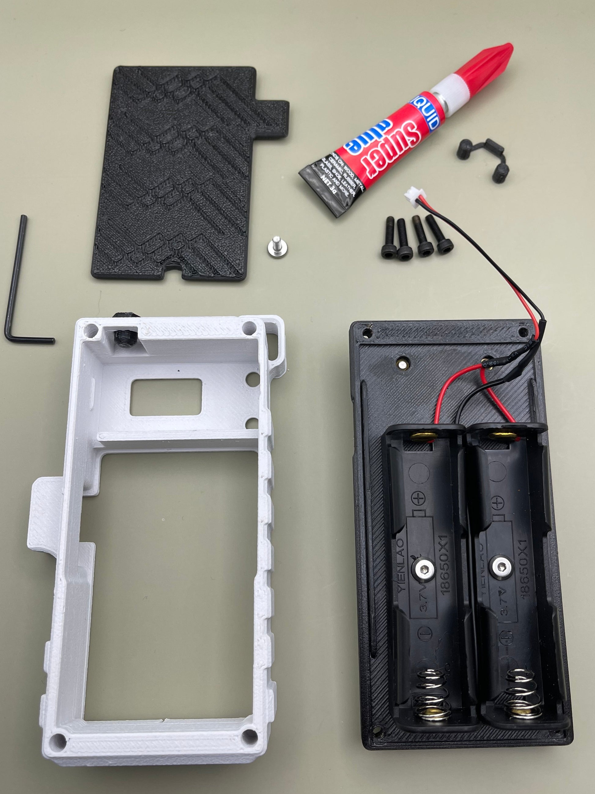 what you’ll get is the whole case for the Heltec V3, an Allen key for the battery cover, and two 18650 holders for your batteries. The harness will be ready to plug and play into your board.