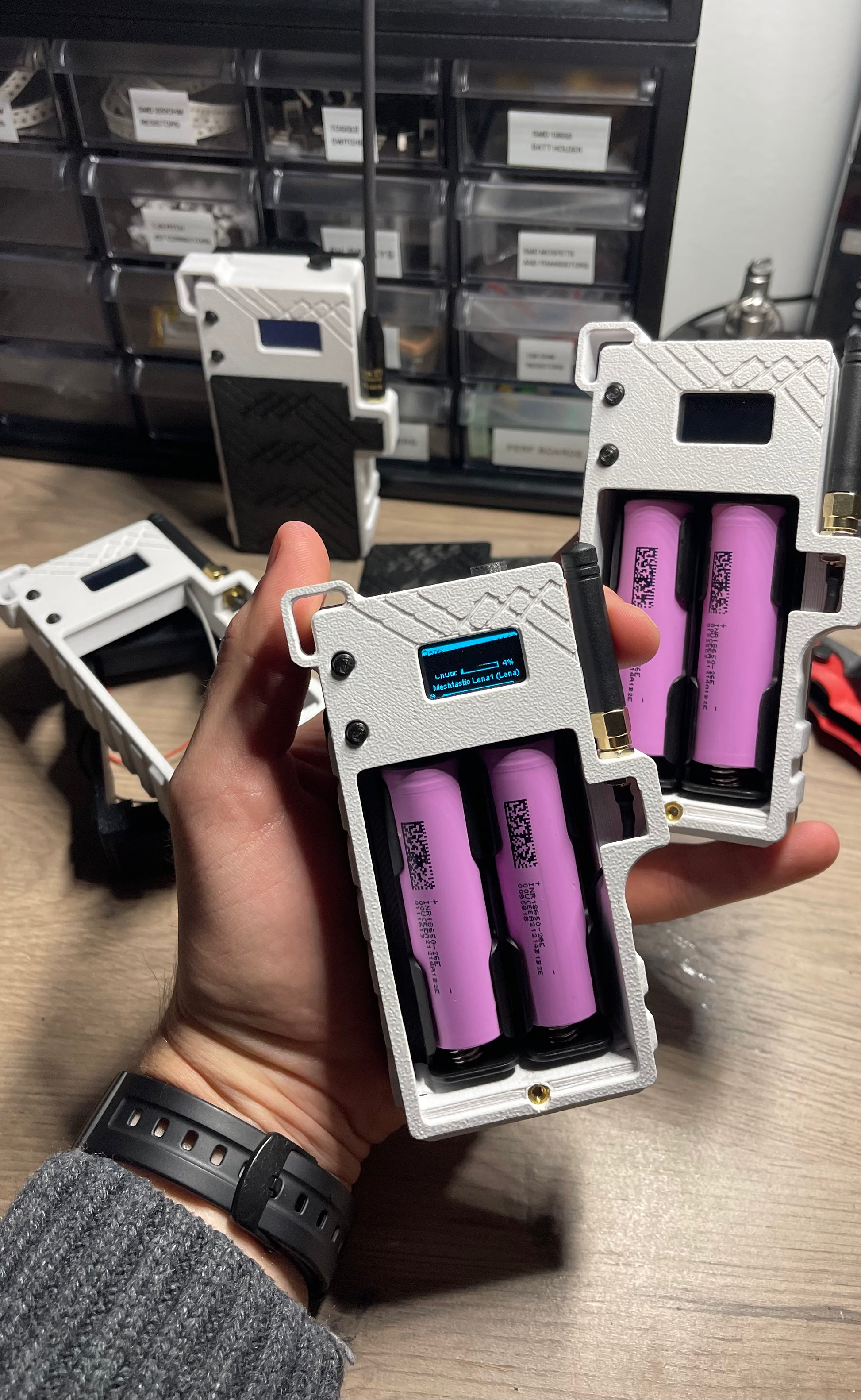 Your choice of a Heltec V3, V4, or T114 node. The kit comes all pre-assembled. BATTERIES NOT INCLUDED due to shipping regulations. What comes in the Kit is a custom case, 18650 holders for the batteries, the board of choice, LoRa antenna 915mHz. All you need are a couple batteries to kick it on. Kits will come Pre-flashed with Meshtastic. GPS models will be set to have GPS enabled and ready to use.