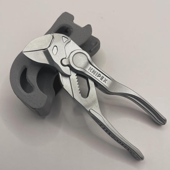 Made of an ash grey Carbon Fiber infused PETG, this holster is designed to tightly hold the Knipex Cobra XS and Knipex Wrench XS pliers in the holster. Equipped with a belt clip that holds the case to your hip or bag. Heat inserts are fused into the holster and holds the belt clip to the holster by means of 3mm bolts with thread lock.