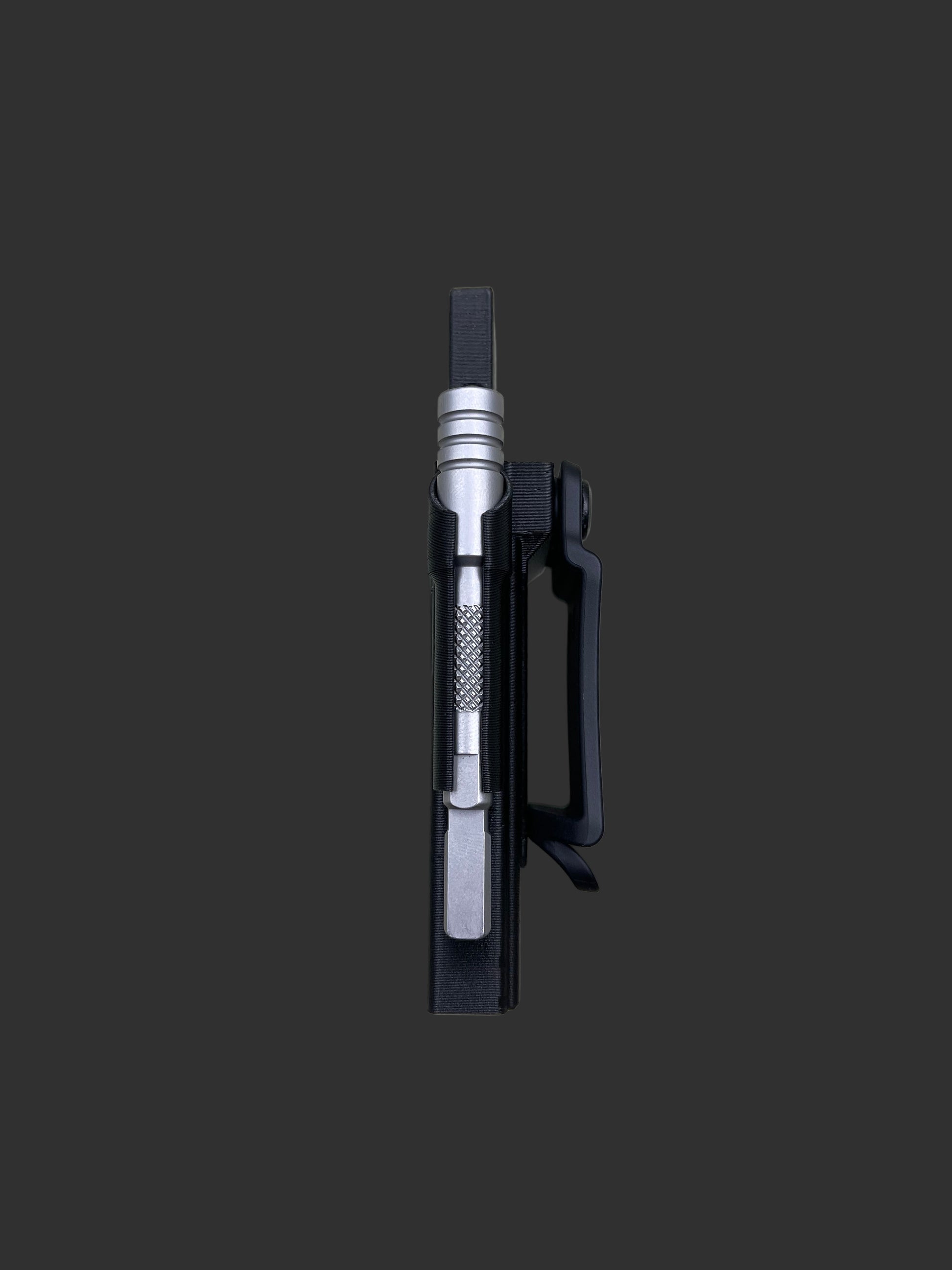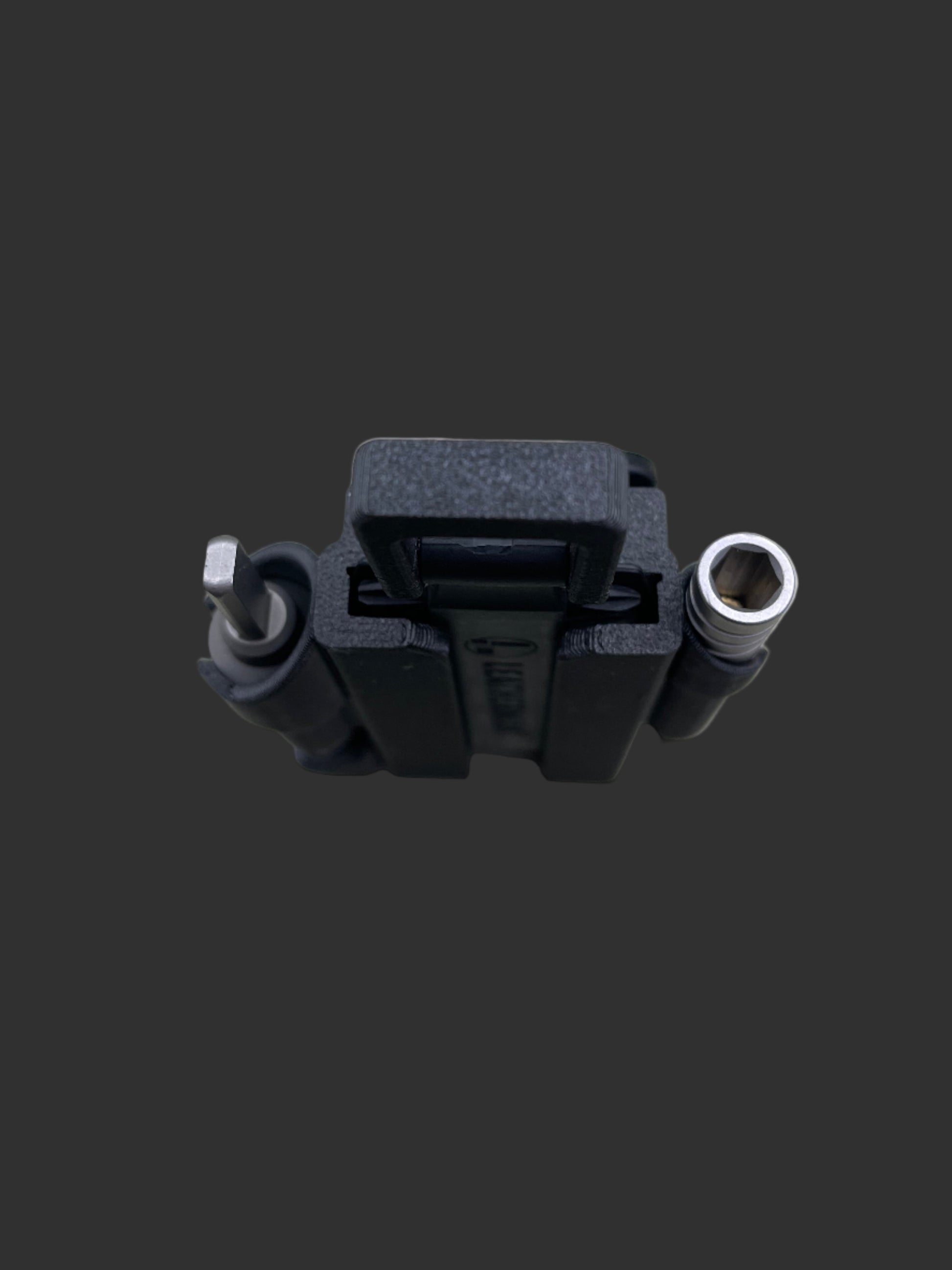 This Bit Kit holster holds standard sleeves, Bit Kit #3 with the square to 1/4” adapter, Ratchet extender, and standard extender ALL IN ONE! This allows you to customize your holster as you wish, keeping this holster versatile in that sense. PETG-CF material, New style Clip and 7M heat inserts.