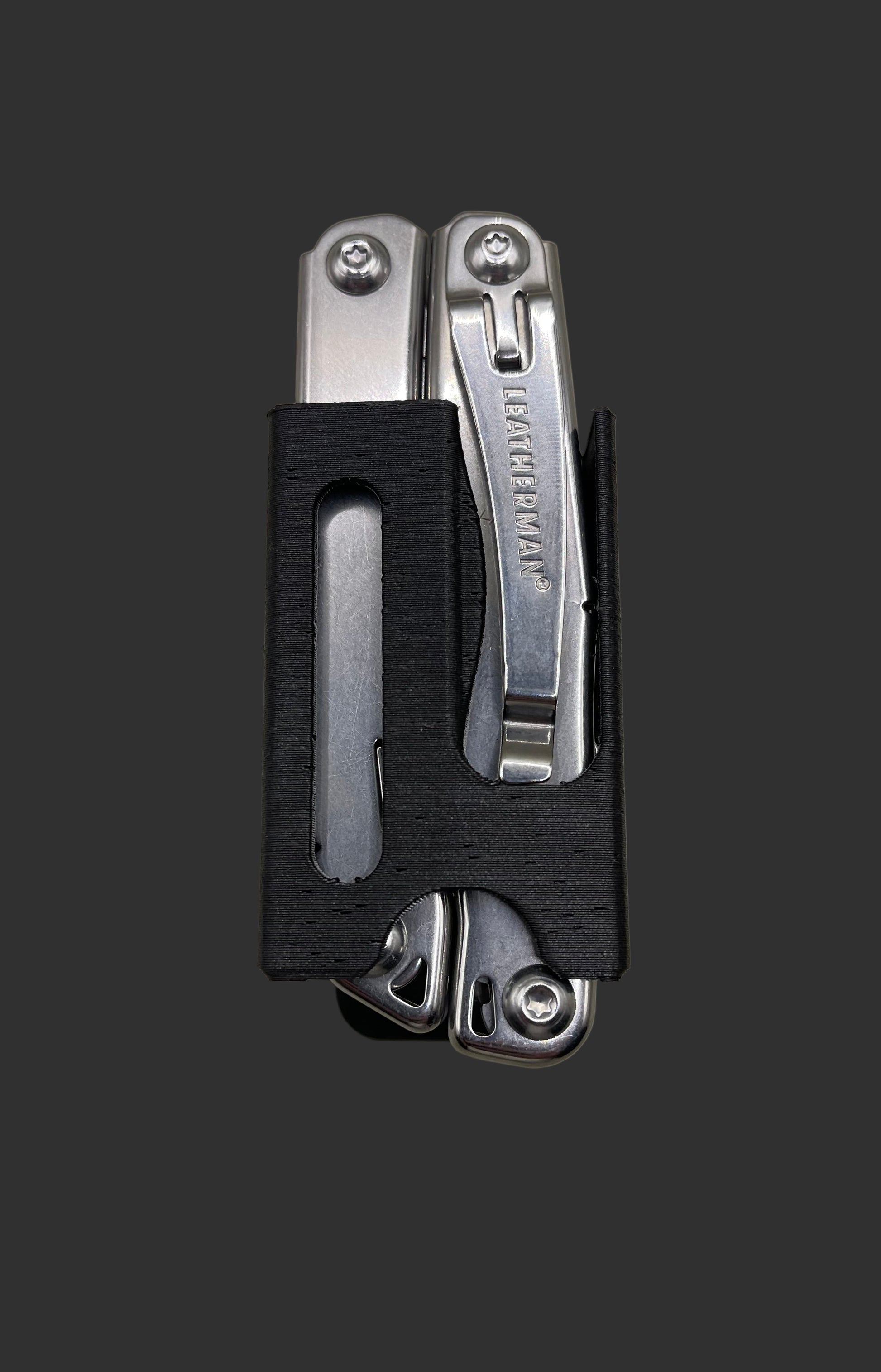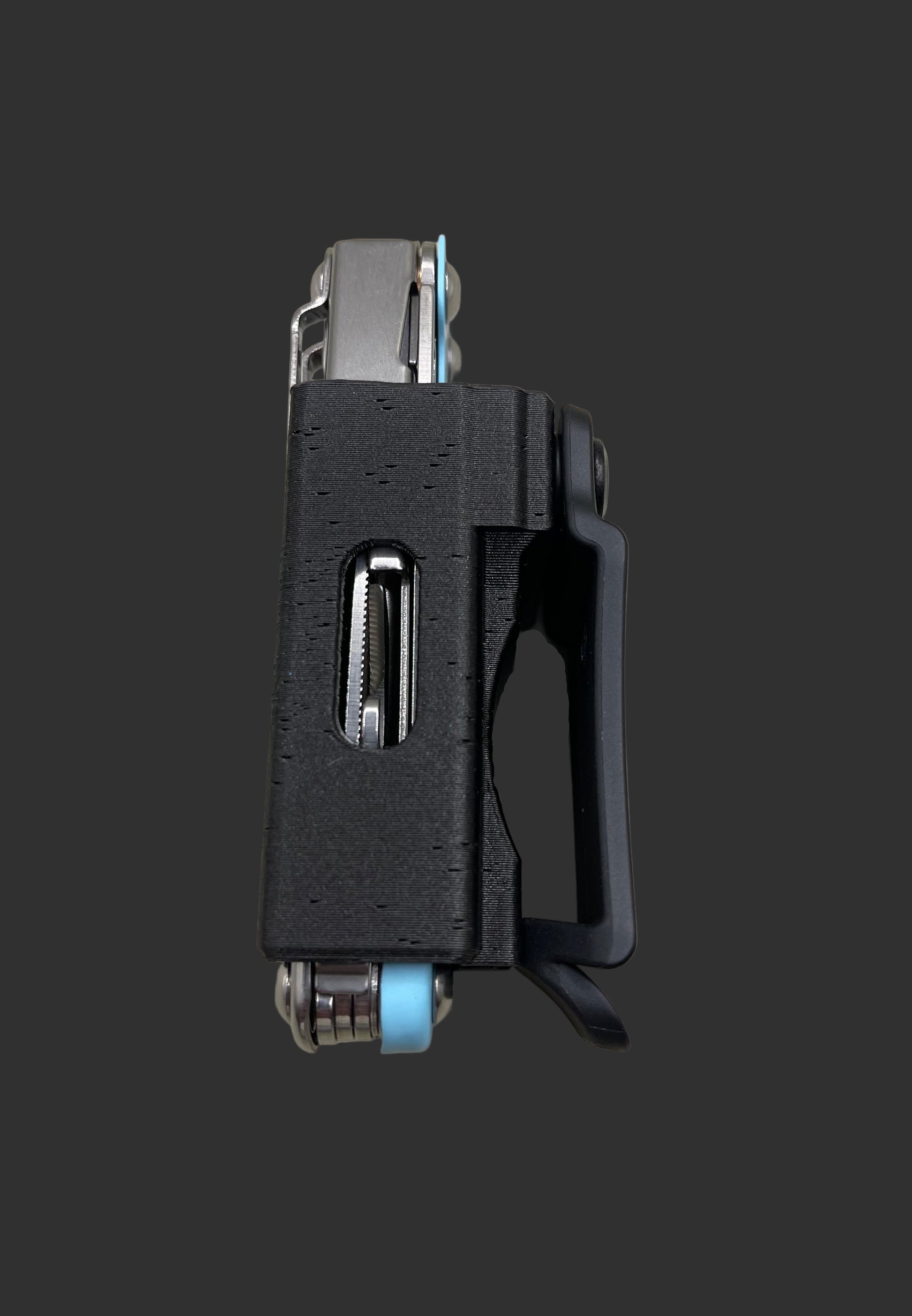 Leatherman Sidekick compatible holsters. Belt clip with “snap on” mechanism for easy on/off engagement. Bolts with thread lock to keep the clip secure, and heat inserts melted into the PETG-CF material to the bolts in the holster.