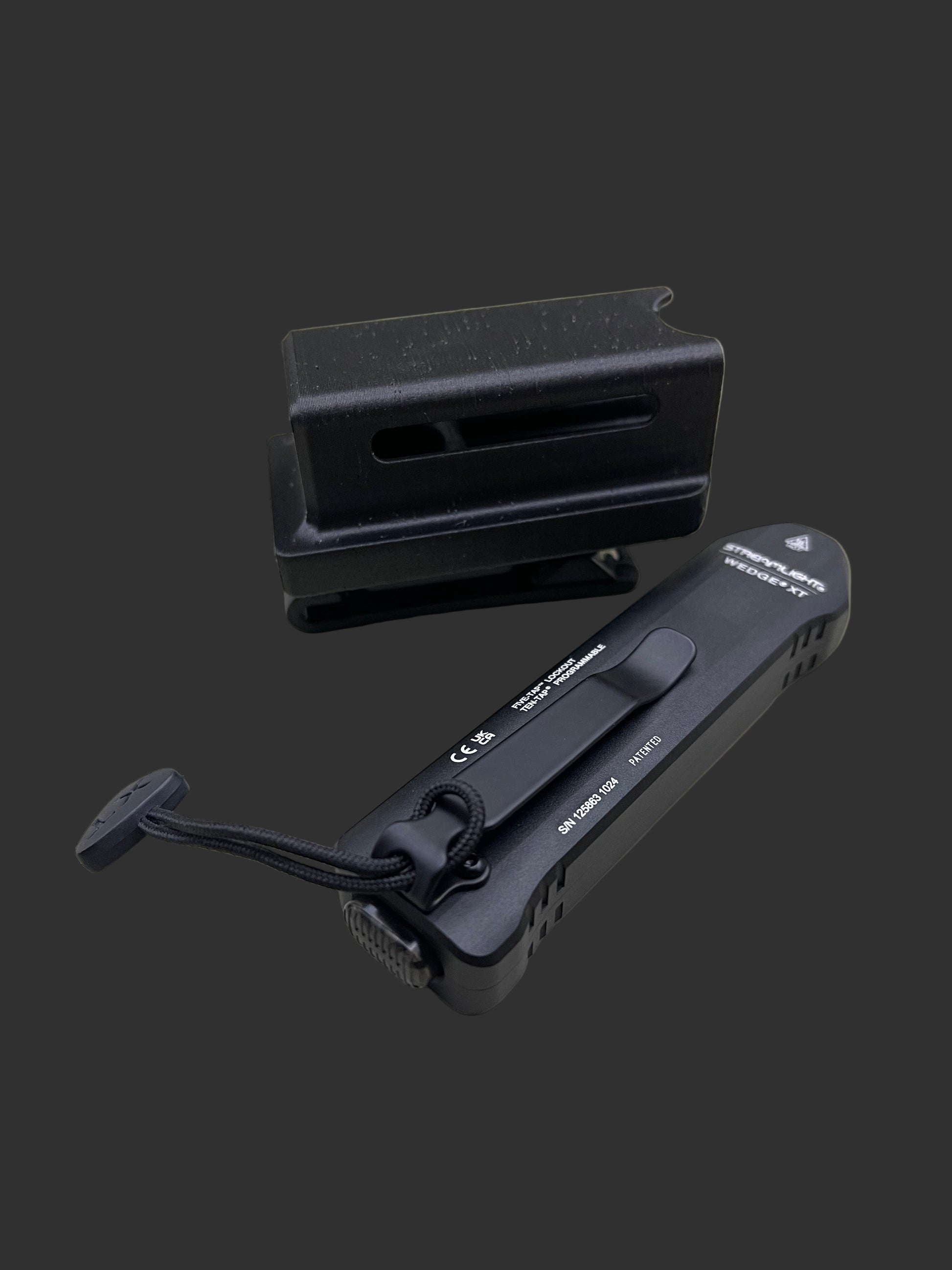 Fits the StreamLight Wedge XT EDC light. Made of PETG-CF material. Belt clip is capable of rotating 360° for comfort or to assist in aiming the light for hands free operation.
